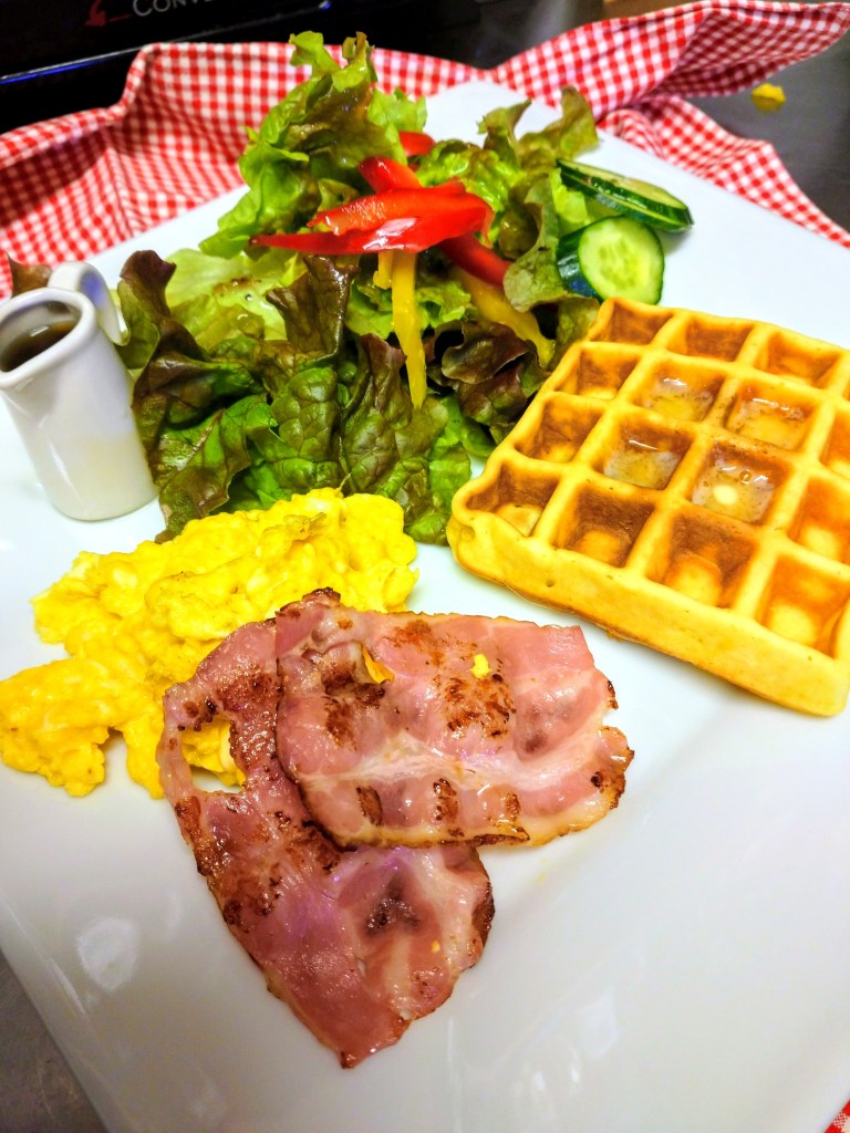 合鴨のスモークロース・ベーコンエッグなど お好きな具材を選んで・・・たっぷりの野菜サラダとフライドポテトもついています。